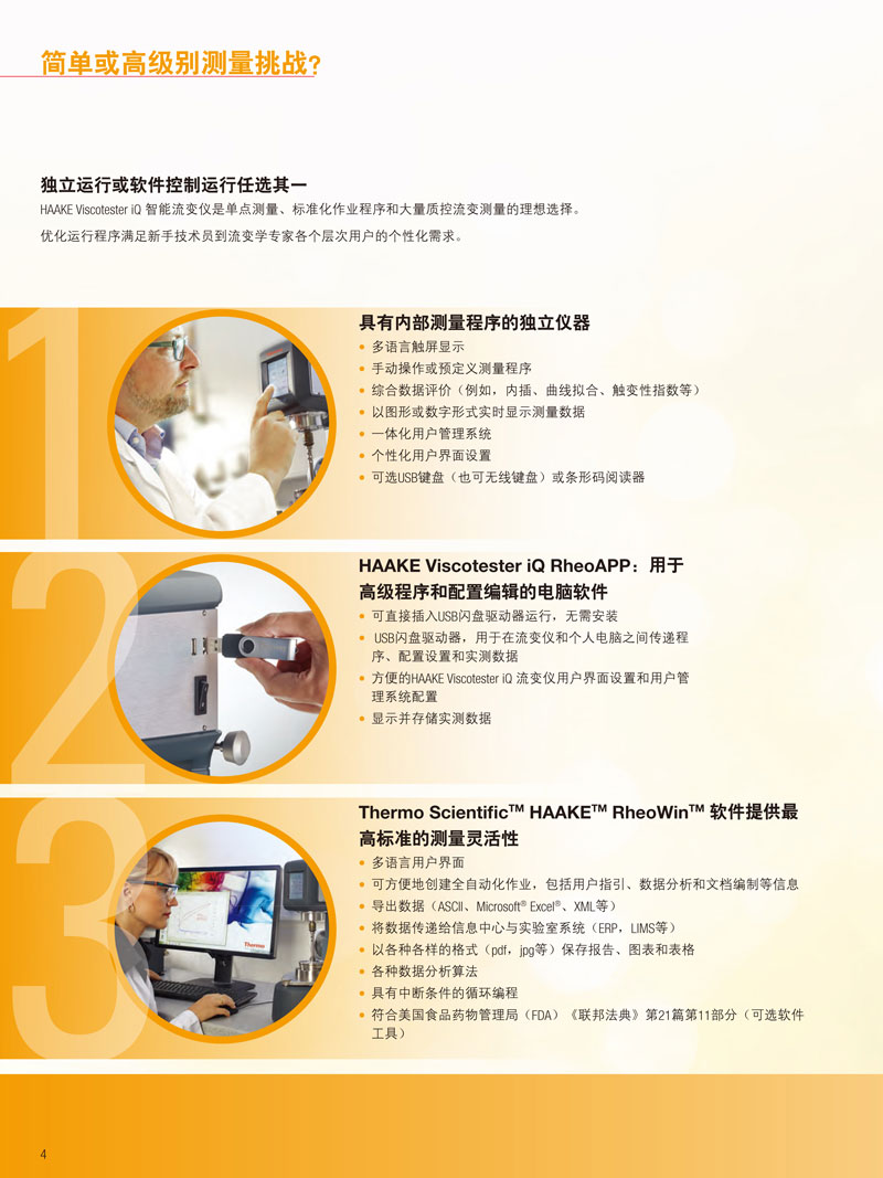 HAAKE Viscotester iQ 上裝有觸摸屏界面,可以作為獨立儀器使用,此外,可以通過安裝 USB 閃存驅動器上獨特的賽默飛HAAKE Viscotester iQ RheoApp 軟件實現其擴展功能。此外,儀器可以通過臺式計算機上的軟件完全控制運行。儀器的“Temperature Assist”功能聯合 Peltier 溫度控制系統,使用戶真實準確地測量出樣品溫度,并減少測量時間。