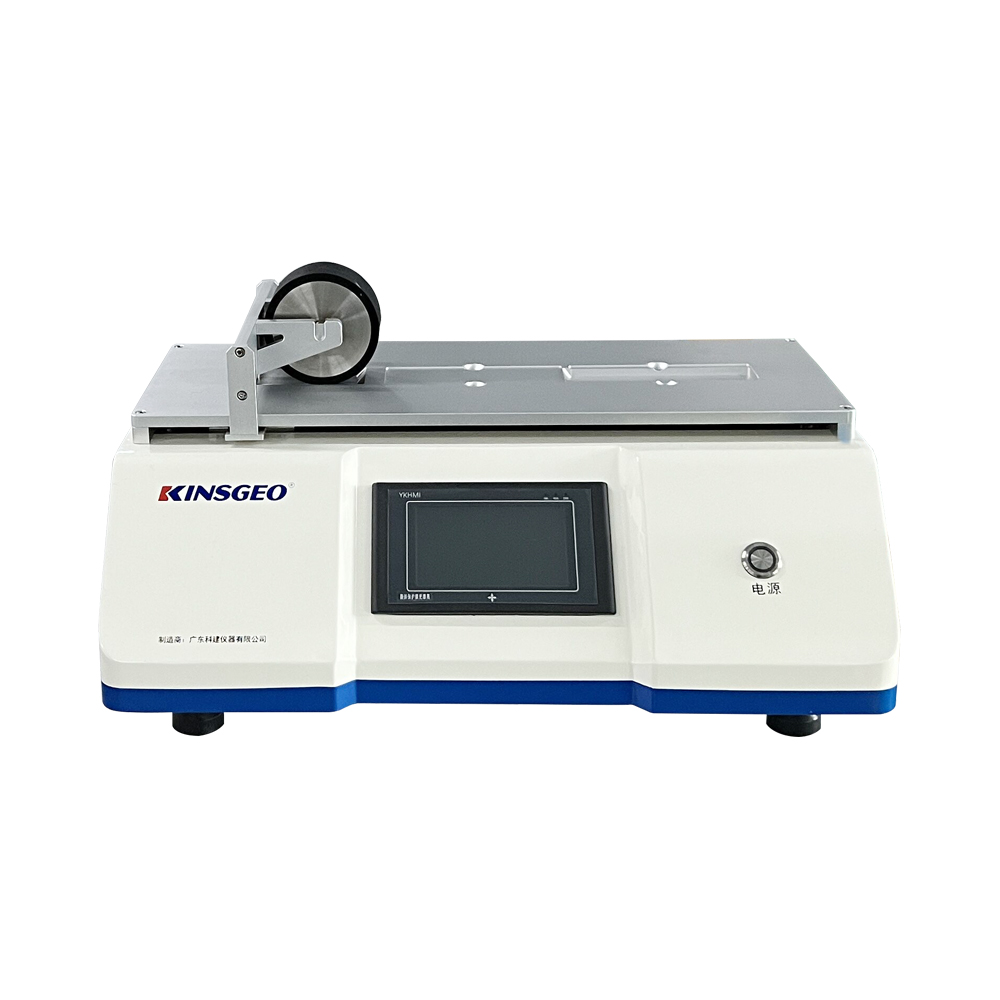 電動碾壓滾輪用于膠粘帶剝離強度、持粘性等試驗用試件的制備。以固定的壓力及速度,將膠粘帶試樣規范平整,均勻的粘著于標準的試驗基材上。
